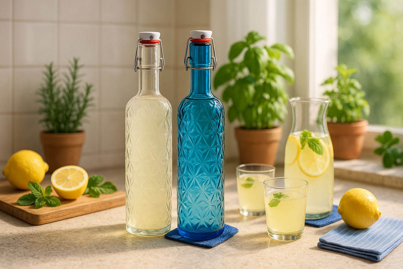 Die Serie „Oriente“ vereint kunstvolle Ästhetik mit funktionaler Perfektion. Inspiriert von orientalischen Elementen besticht diese Flasche durch ihren facettierten Körper, der Lichtreflexe auf elegante Weise einfängt und dem Design eine luxuriöse Tiefe verleiht. Erhältlich in den Farben Klar und Azurblau setzt sie besondere Akzente und bringt Exotik und Eleganz in jede Umgebung. Der luftdicht schließende Bügelverschluss sorgt nicht nur für eine sichere Versiegelung, sondern unterstreicht auch die traditionelle Handwerkskunst, die in dieser Flasche steckt.