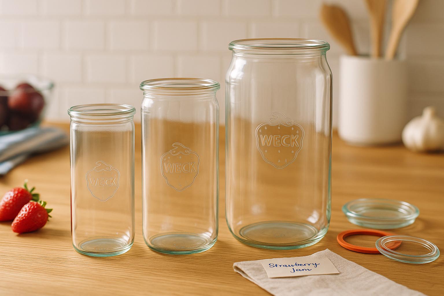 Die Rundrand-Mündungen von WECK sind ein essenzielles Merkmal der traditionellen Einkochgläser. Sie ermöglichen ein einfaches und zuverlässiges Verschließen mithilfe eines Glasdeckels, eines Gummirings und der charakteristischen Einkochklammern. Die gleichmäßige, abgerundete Form der Mündung sorgt für eine optimale Abdichtung beim Einkochen und eine einfache Reinigung. In unserem Sortiment erhalten Sie die passenden Deckel und Gummiringe von WECK für verschiedene Gläser und Anwendungen.