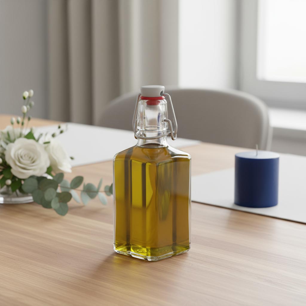 Die Produktserie "Rialto" von Flaschenland umfasst hochwertige quadratische Glasflaschen mit einem Fassungsvermögen von 250 ml und einem praktischen Bügelverschluss – ideal für die sichere und stilvolle Aufbewahrung verschiedenster Flüssigkeiten. Die Glasflaschen der Rialto-Serie zeichnen sich durch ihre robuste und hitzebeständige Materialqualität aus. Sie sind kältebeständig, spülmaschinengeeignet, mikrowellenfest sowie backofenfest, was eine vielseitige Nutzung ermöglicht. Die quadratische Form sorgt für eine platzsparende Lagerung und eine elegante Optik. Der Bügelverschluss garantiert eine luftdichte Abdichtung und einfachen Verschluss. Mit einem Fassungsvermögen von 250 ml sind die Flaschen optimal für Essig, Öl, Liköre, Spirituosen und Schnaps geeignet.