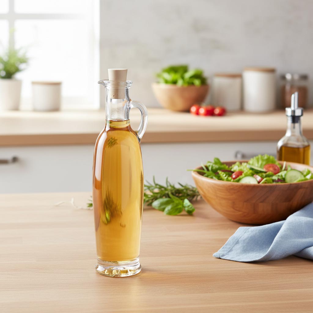 Die Produktserie „Schnabelmundflasche“ von Flaschenland umfasst hochwertige Glasbehälter, die speziell für die Aufbewahrung und Dosierung von Flüssigkeiten wie Essig und Öl entwickelt wurden. Mit ihrer charakteristischen Schnabelmundöffnung und der praktischen Korkmündung vereinen diese Flaschen Funktionalität und zeitloses Design. Die 250 ml Glasflasche „Simona“ zeichnet sich durch ihr robustes, hitze- und kältebeständiges Glasmaterial aus, das zudem spülmaschinengeeignet, mikrowellen- und backofenfest ist. Diese vielseitigen Eigenschaften machen die Flasche besonders langlebig und pflegeleicht. Die runde Form des Behälters sorgt für eine angenehme Handhabung und eine sichere Aufbewahrung. Die Korkmündung bietet eine zuverlässige Abdichtung und ermöglicht gleichzeitig eine einfache Dosierung der Flüssigkeiten.