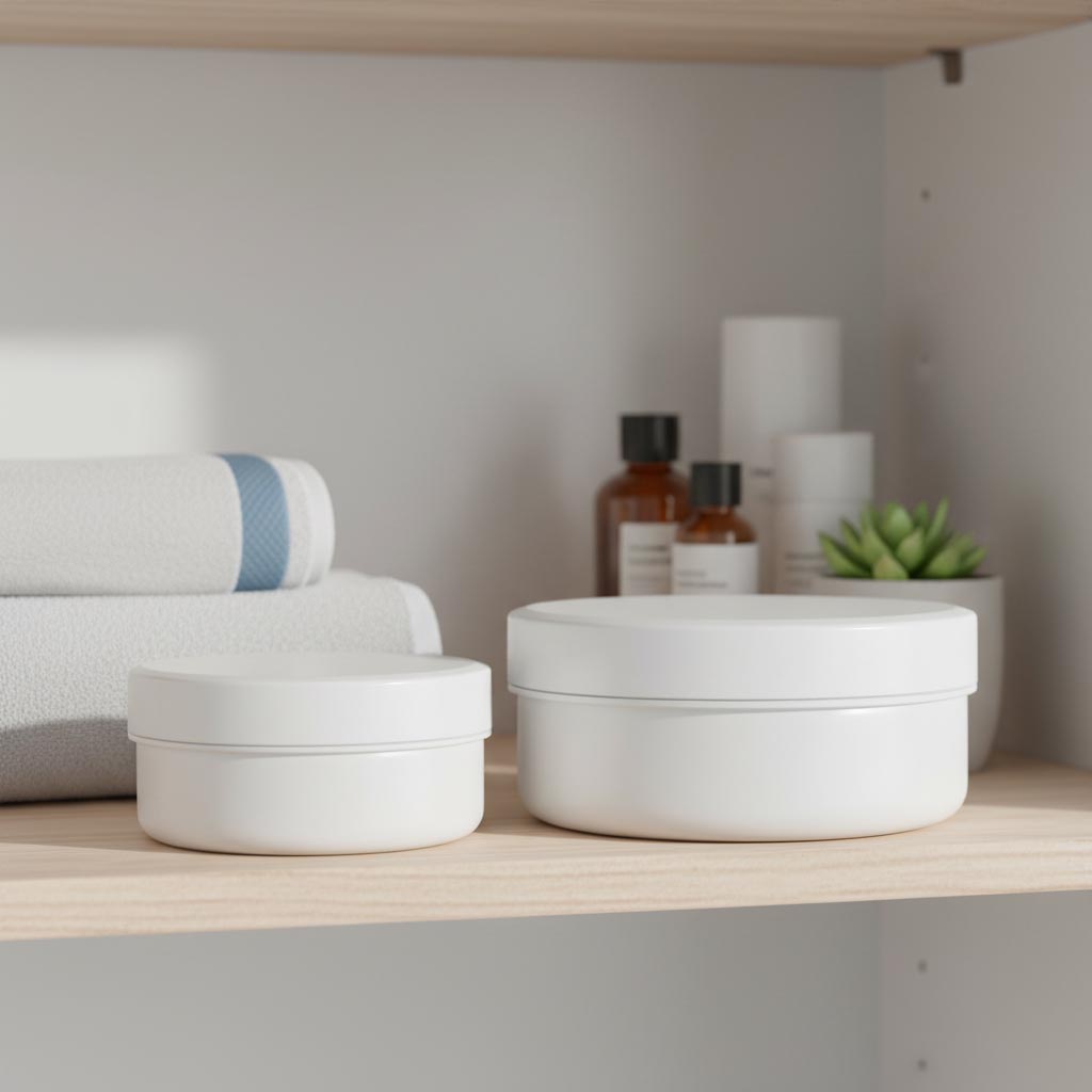 Die Kunststoffdose „White Line“ aus der Produktlinie PP-Tiegel von Flaschenland überzeugt durch ihre hochwertige Verarbeitung und vielseitige Verwendungsmöglichkeiten. Mit einem Fassungsvermögen von 250 ml bietet sie optimale Lagerungslösungen für Cremes und kosmetische Produkte. Diese runde Kunststoffdose besteht aus robustem, weißem Polypropylen (PP), das kältebeständig, spülmaschinengeeignet und UV-beständig ist. Der praktische Schraubverschluss sorgt für eine sichere und luftdichte Verschließbarkeit, wodurch die Inhalte zuverlässig geschützt werden. Die Kombination dieser Eigenschaften macht die Dose besonders langlebig und widerstandsfähig gegenüber Umwelteinflüssen. Die 250 ml Kunststoffdose „White Line“ eignet sich ideal für die Aufbewahrung und den Transport von Cremes, Lotionen und anderen kosmetischen Produkten.