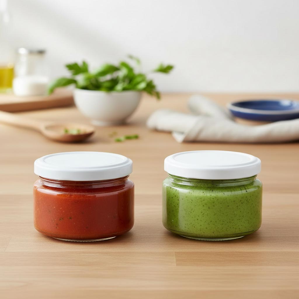 Das flache Rundglas mit 280 ml Fassungsvermögen besticht durch eine elegante Form und ist ideal zum Abfüllen von Wurst, Marmeladen und Saucen und die Präsentation von Desserts im Glas. Kompatibel ist es mit einem Twist-Off-Deckel (TO 82). Das Produkt ist spülmaschinengeeignet, kälte- und hitzebeständig, mikrowellen- und ofenfest.