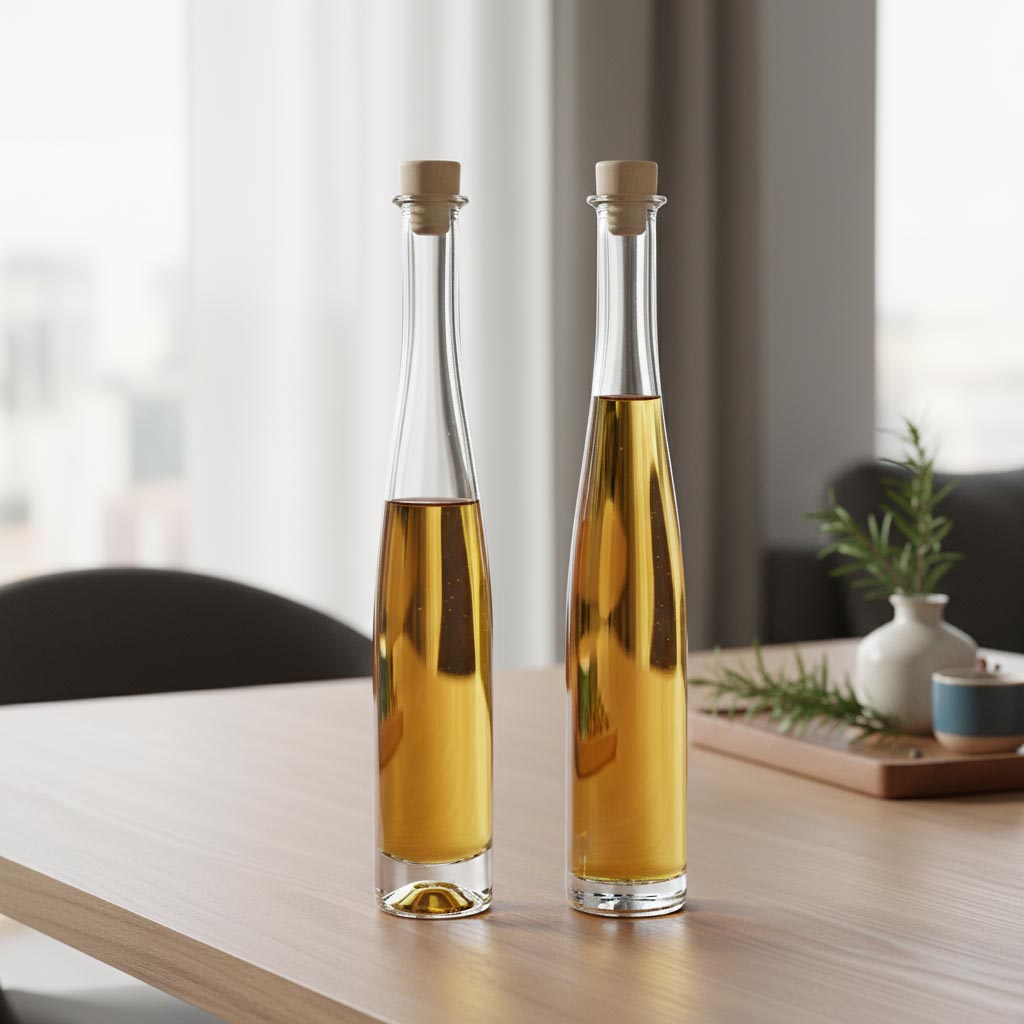 Die Produktserie „Renana“ von Flaschenland umfasst hochwertige Glasflaschen, die durch ihre vielseitige Einsetzbarkeit und robusten Eigenschaften überzeugen. Besonders die 350 ml Glasflasche „Renana Futura“ mit Korkmündung steht für funktionales Design und Langlebigkeit. Diese Glasflasche zeichnet sich durch ihre kältebeständige, hitzebeständige sowie mikrowellen- und backofenfeste Beschaffenheit aus. Sie ist spülmaschinengeeignet und somit besonders pflegeleicht. Mit einem Fassungsvermögen von 350 ml eignet sie sich ideal für die Aufbewahrung und Abfüllung von Likören, Spirituosen, Schnaps und Wein. Die Korkmündung garantiert eine sichere und luftdichte Verschließbarkeit, die das Aroma und die Qualität der Inhalte bewahrt. Das runde Design der Glasbehälterfamilie „Renana“ vereint Ästhetik mit Funktionalität.