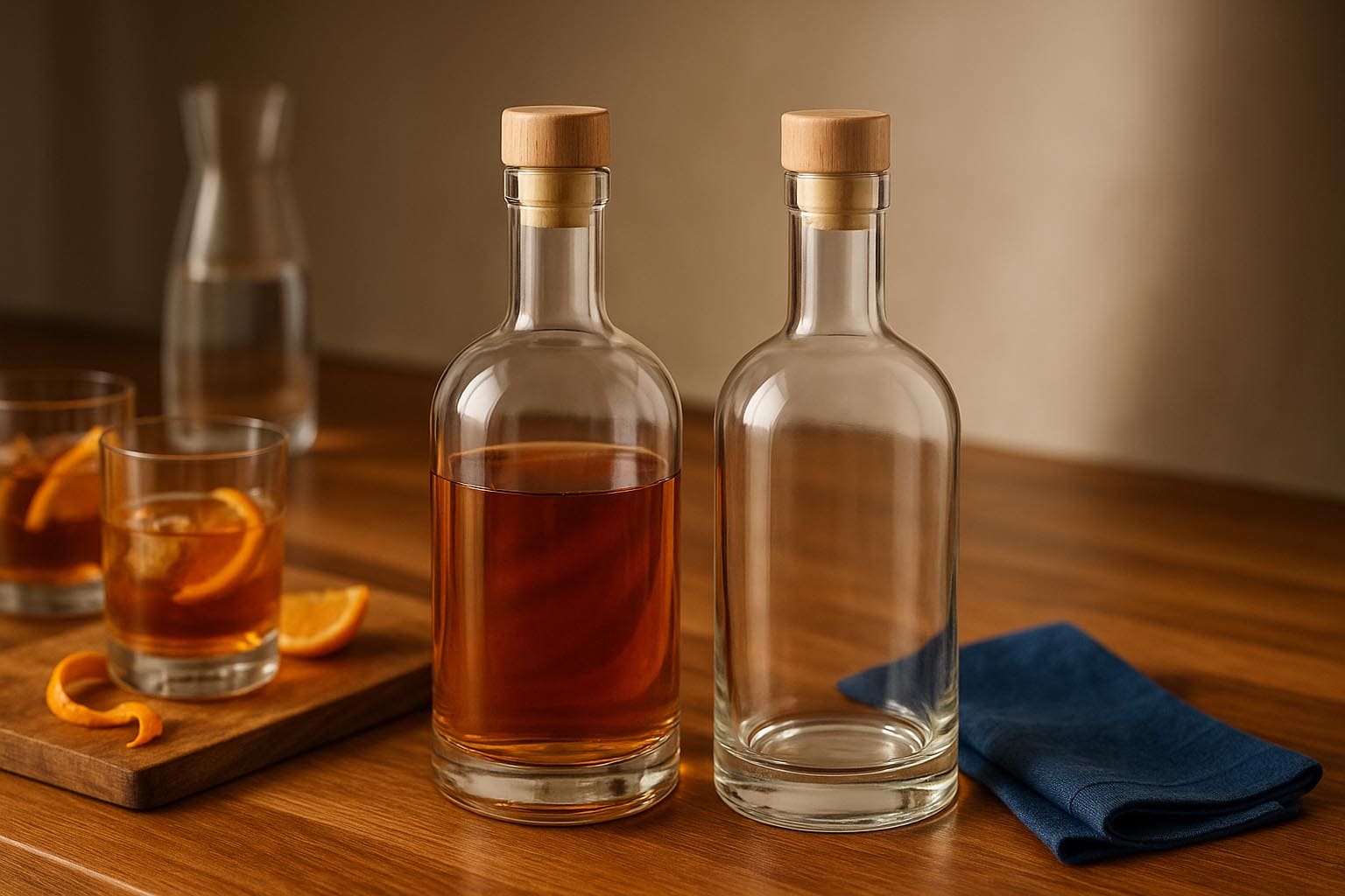 Die Designflasche Franco verbindet italienische Handwerkskunst mit zeitloser Eleganz und bietet eine stilvolle Lösung für hochwertige Spirituosen, Liköre, Sirupe und andere edle Füllgüter. Erhältlich in den Größen 500 und 700 ml, überzeugt sie mit klaren Linien und einer harmonischen Form, die jede Abfüllung perfekt in Szene setzt. Die klassische Korkmündung ermöglicht eine sichere und stilvolle Versiegelung – passende Verschlüsse sind in unserem Sortiment erhältlich. Mit ihrer hochwertigen Verarbeitung und ihrem minimalistischen Design ist Franco die ideale Wahl für Marken, die Exklusivität und Eleganz in einer Flasche vereinen möchten.