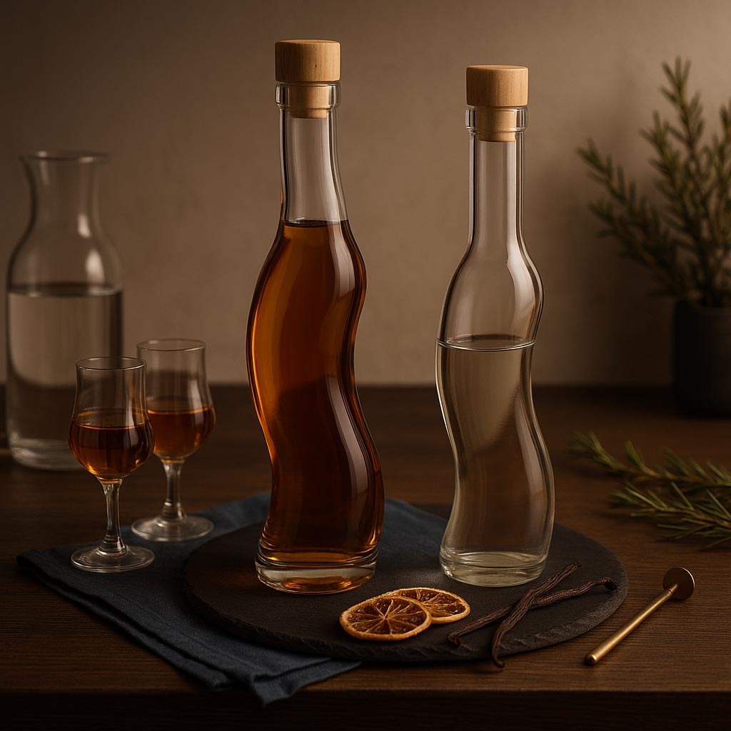 Die Serie La-Ola vereint außergewöhnliche Ästhetik mit höchster Funktionalität und bietet eine exklusive Verpackungslösung für edle Liköre, erlesene Spirituosen und weitere feine Spezialitäten. Die geschwungene Form dieser Klarglasflasche erinnert an sanfte Wellenbewegungen und verleiht ihr eine einzigartige, dynamische Optik. Mit einer halbrunden Grundfläche hebt sich La-Ola von klassischen Flaschenformen ab und setzt stilvolle Akzente. Erhältlich in den Größen 350 und 500 ml, bietet sie ausreichend Platz für hochwertige Inhalte. Die Korkmündung sorgt für eine traditionelle und sichere Versiegelung – passende Verschlüsse sind in unserem Sortiment erhältlich. La-Ola steht für Eleganz, Bewegung und eine raffinierte Präsentation edler Genussmomente.