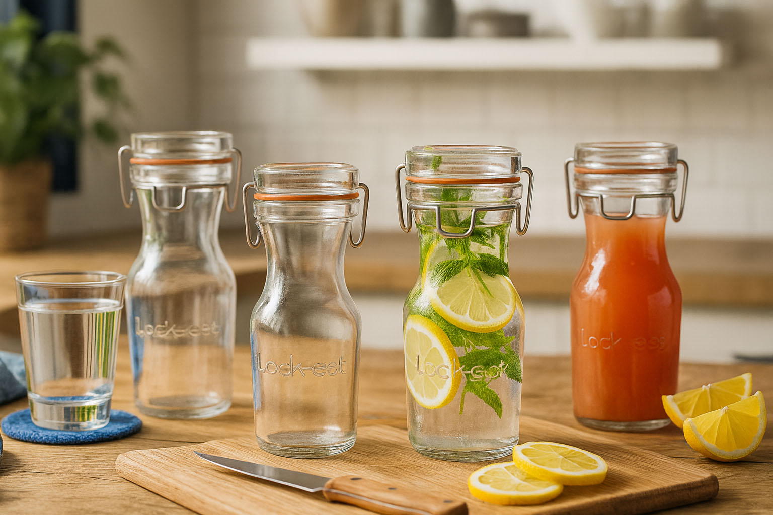 Dank ihrer vielseitigen Einsatzmöglichkeiten ist die Serie „Lock-Eat“ ideal für die Aufbewahrung und das stilvolle Servieren von Wasser, Säften, Wein und anderen Getränken. Durch die luftdichte Versiegelung bleiben Aromen erhalten und der Inhalt bleibt länger frisch.
