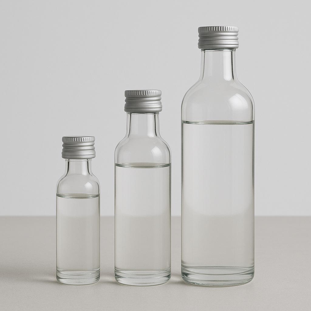 Die Krugflasche vereint eine schlanke, hohe Silhouette mit funktionaler Vielseitigkeit und bietet eine stilvolle Verpackungslösung für edle Spirituosen, feine Öle und aromatische Essige. Ihr klares Glas betont die Reinheit des Inhalts, während der kurze Hals für eine kompakte und elegante Form sorgt. Wahlweise mit PP-18- oder PP-28-Mündung, für die passende Verschlüsse in unserem Sortiment erhältlich sind, gewährleistet die Krugflasche eine sichere und zuverlässige Versiegelung. In Größen von 20 bis 500 ml erhältlich, ist sie ideal für kleine Produktmengen, Verkostungen oder exklusive Genussmessen, aber auch für größere Abfüllungen.
