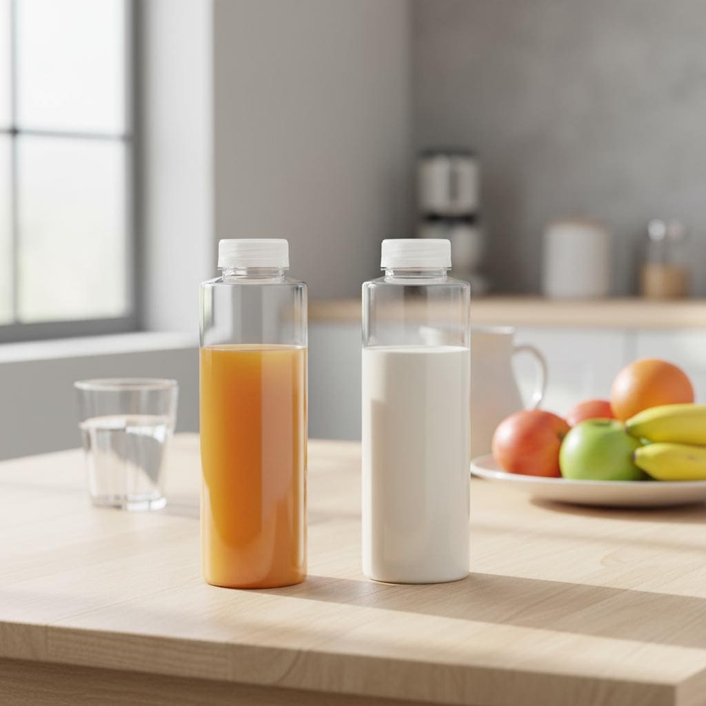 Die Produktserie „PET Weithals“ von Flaschenland umfasst hochwertige Kunststoffbehälter, die speziell für vielseitige Abfüllungen entwickelt wurden. Das Hauptmerkmal dieser Serie ist die praktische Weithalsöffnung mit 38 mm Durchmesser, die eine einfache Befüllung und Reinigung ermöglicht. Die 500 ml PET-Flasche „Everytime“ zeichnet sich durch ihr robustes, lebensmittelechtes Kunststoffmaterial aus, das eine sichere Lagerung von Flüssigkeiten wie Milch, Saft und Wasser gewährleistet. Dank des transparenten Designs behalten Sie jederzeit den Überblick über den Füllstand. Die kompakte Größe von 500 ml macht die Flasche besonders handlich und ideal für den täglichen Gebrauch. Die runde Form des Behälters sorgt für eine angenehme Haptik.