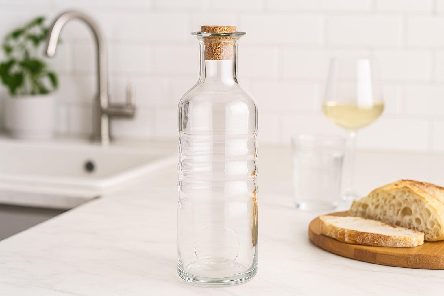 Mit einem Fassungsvermögen von 750 ml und einer runden Form überzeugt die Flasche durch ihre elegante Optik und praktische Handhabung. Der Korkverschluss sorgt für eine sichere und stilvolle Versiegelung, die den Inhalt optimal schützt.